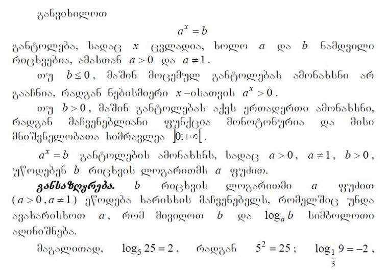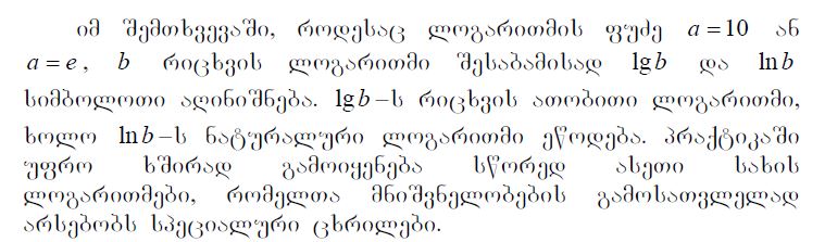 შენიშვნა: მათემატიკური ცნებები ძირითადად წარმოდგენილია ეროვნული მისაღები გამოცდებისთვის განკუთვნილი სახელმძღვანელოდან - ავტორები: ს.თოფურია, ვ.ხოჭოლავა, ნ.მაჭარაშვილი, გ. აბესაძე, ზ. მეტრეველი.